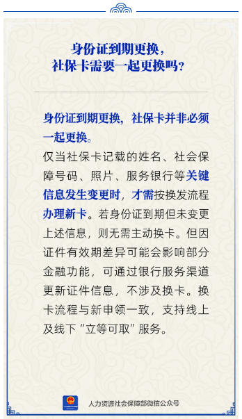 身份证到期更换,社保卡需要一起更换吗?